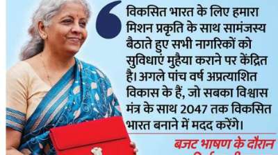नई दिल्ली । वित्त मंत्री निर्मला सीतारमण संसद में अंतरिम बजट पेश कर रही हैं। यह बजट मोदी सरकार के दूसरे कार्यकाल का अंतिम बजट है। वित्तमंत्री इस बार छठा बजट...