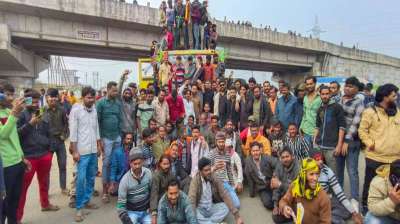 इंदौर-अहमदाबाद फोरलेन पर चालकों ने जाम लगा दिया, बस बंद होने के कारण यात्रियों को काफी परेशानियों का सामना करना पड़ रहा है