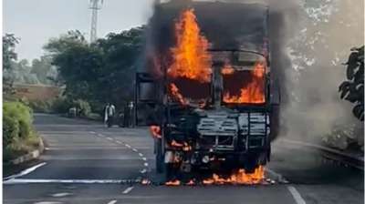 चलते ट्रक में अचानक लगी आग, NH-44 पर मचा हड़कंप