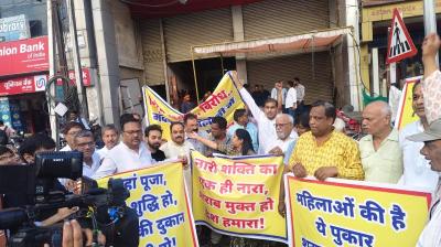 महिलाओं ने किया शांतिपूर्ण विरोध, भजन-कीर्तन के माध्यम से आवाज उठाई