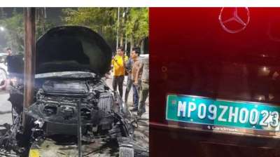 कार से रेस लगा रही थी युवती, खंभे से जा भिड़ी, मर्सिडीज के परखच्चे उड़े