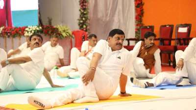 Indore News : इंदौर में योग दिवस पर अनेक आयोजन हुए। स्कूलों में, शासकीय संस्थानों में सामूहिक योग किया गया।