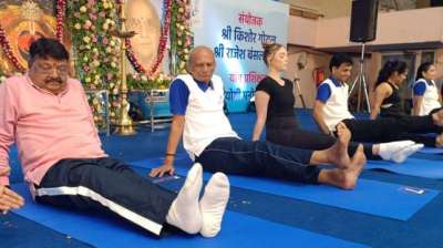अभय प्रशाल में योगा के लिए मंत्री विजयवर्गीय के अलावा सांसद शंकर लालवानी और विधायक गोलु शुक्ला का भी नाम पुकारा गया। विजयवर्गीय ने तो पूरे समय योगा किया, लेकिन...
