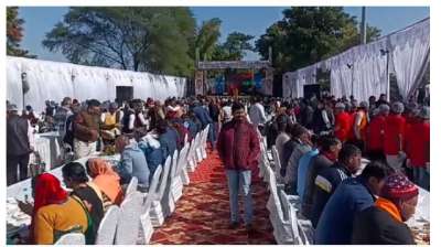 रीवा जिले में डिप्टी सीएम राजेंद्र शुक्ल और उनके सहयोगियों की ओर से विशाल भंडारे का आयोजन किया