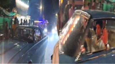 महाराज का विंटेज स्वैग! ज्योतिरादित्य और बेटे महान आर्यमन थंडरबर्ड रॉयल कार में दिखे, ग्वालियर की सड़कों पर बिखरी शाही शान