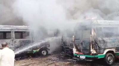 भदोही जिला अस्पताल में रखी डेढ़ दर्जन एम्बुलेंस में लगी भीषण आग