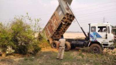 अवैध रेत के उत्खनन पर एक बार फिर हुई बड़ी करवाई 75 ट्रेक्टर जप्त रेत को वापिस नदी में डाला गया!