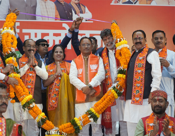 मुख्यमंत्री श्री साय ने कहा कि पूरे प्रदेश के नगर निगम नगर पालिका और नगर पंचायत में विकास के कार्य हो रहे हैं। रायपुर नगर निगम अंतर्गत आज रायपुर के 1,87,000 बहनों को महतारी वंदन योजना का लाभ मिल रहा है और पिछले 1 वर्षों में तेजी से विकास के कार्य हुए हैं। आज स्वामित्व कार्ड योजना का लाभ भी जो आबादी भूमि पर कई पीढियाँ से मकान बनाकर निवास कर रहे थे, उन लोगों का स्वामित्व कार्ड नहीं होने के कारण परेशानियाँ होती थीं, वह लोन भी नहीं ले पाते थे। एक दिन में ही 61 हजार ग्रामीण क्षेत्र के लोगों को स्वामित्व कार्ड दिया गया। श्री साय ने कहा कि रायपुर में हितग्राहियों को पट्टा देने का वादा भी हम कर रहे हैं। आचार संहिता हटने के बाद उन्हें यह पट्टा दिया जाएगा। मोदी की गारंटी को पूरा करने का काम हम कर रहे हैं। पं. दीनदयाल उपाध्याय भूमिहीन खेतिहर मजदूर कल्याण योजना 5,62,000 परिवार छत्तीसगढ़ में हैं, इनको साल 10 हजार दे रहे हैं।