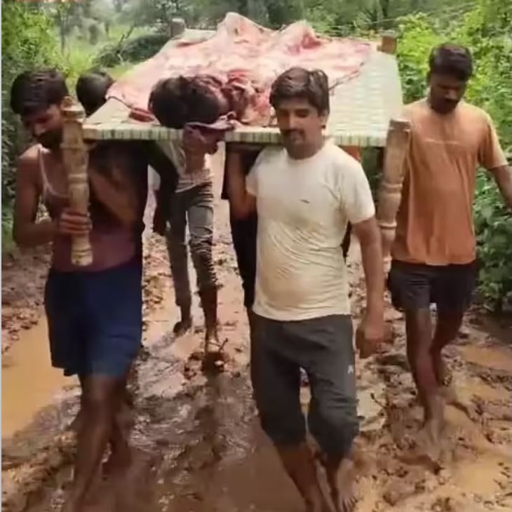 मैहर में बदहाल व्यवस्था: सड़क न होने के कारण एंबुलेंस नहीं पहुंची, ग्रामीणों ने खाट को बनाया स्ट्रेचर