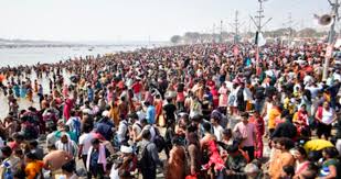 नर्मदा स्नान के लिए सेठानी घाट पर सुबह से ही लगी भक्तों की कतार