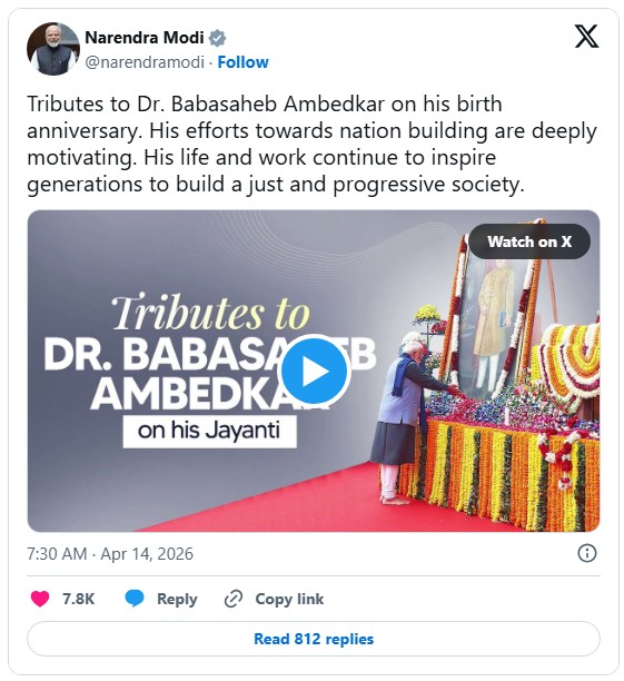 Ambedkar Jayanti पर पीएम Narendra Modi का संदेश — आंबेडकर के विचारों से आगे बढ़ेगा देश
