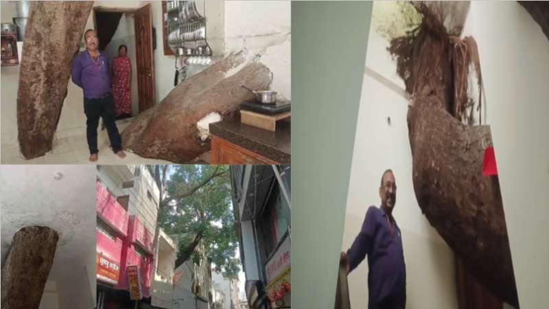घर के भीतर से निकला विशालकाय पेड़