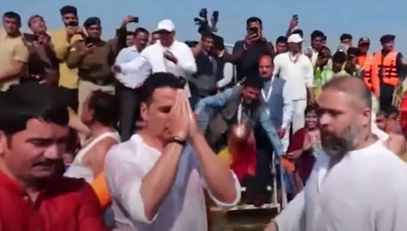 बॉलीवुड एक्टर अक्षय कुमार पहुंचे महाकुंभ, संगम में लगाई डुबकी