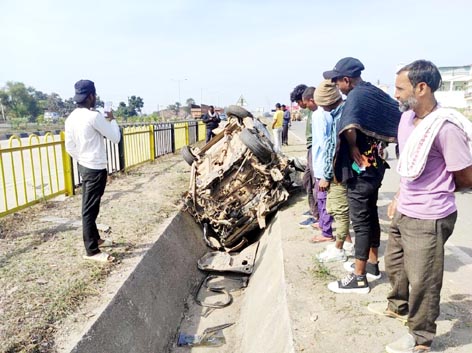 घटना 27 और 28 की दरमियानी रात को कार चालक बिट्टू कश्यप पिता राकेश कश्यप निवासी गिधौरी किसी काम से बेलतरा आ रहा था जाली हाईवे पार करने के बाद उसकी कार हाईवे की रेलिंग से टकरा गई और रेलिंग को तोड़ते हुए पलट गई