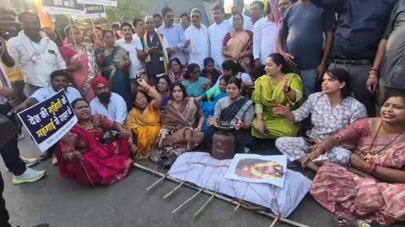 सिलेंडर कीमतों को लेकर दुर्ग में कांग्रेस का हल्ला बोल