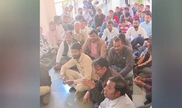 दैनिक वेतनभोगी कर्मचारियों ने मोहन सेन के कार्यालय के सामने जोरदार प्रदर्शन किया