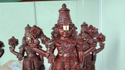 आगरा| ताज महोत्सव इस बार लाल चंदन की खुशबू से महक रहा है। बृहस्पतिवार को चंदन की लकड़ी से बनीं भगवान तिरुपति बालाजी की मूर्तियां आकर्षण का केंद्र रहीं। ये न केवल पर्यटकों को लुभा रही हैं, बल्कि अपनी बेशकीमती नक्काशी और दुर्लभता के कारण चर्चा का विषय भी बन रही हैं। आंध्र प्रदेश के तिरुपति से आए मूर्तिकार बालकृष्णन ने टाटा मैदान में स्टॉल लगाई है। उनकी कला का जादू यहां लोगों के सिर चढ़कर बोल रहा है। सबसे खास बात यह मूर्तियां 50 ग्राम से 400 ग्राम वजन तक में तैयार की गई हैं। जिनकी कीमत 50 हजार से 2 लाख रुपये तक है। इसकी ऊंची कीमत का कारण लाल चंदन की दुर्लभता और उस पर की गई महीनों की मेहनत है। बालकृष्ण ने बताया कि लाल चंदन की लकड़ी बिना किसी पॉलिश के भी सालों-साल चमकती रहती है। इन मूर्तियों से निकलने वाली प्राकृतिक खुशबू पूरे परिसर को भक्तिमय बना रही है। ग्राहकों के बढ़ते क्रेज को देखते हुए इन्हें अब विशेष ऑर्डर पर तैयार किया जा रहा हैं।