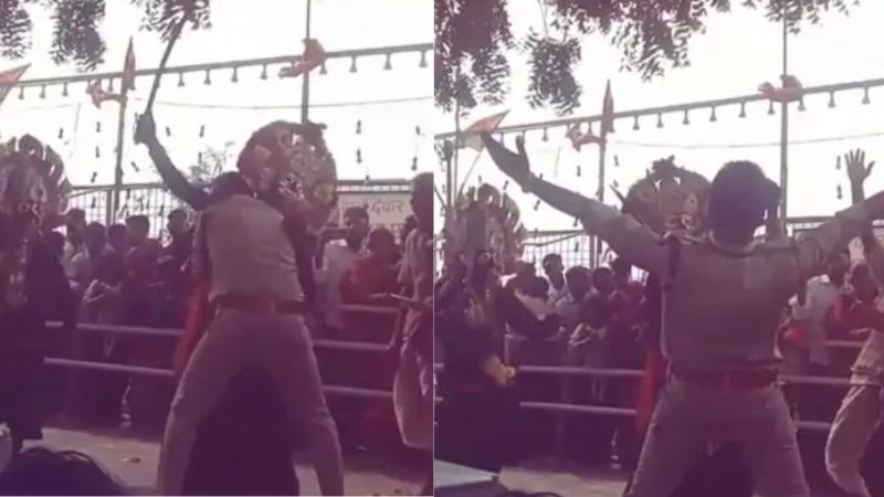 ‘काली’ रूप में नाचते भक्तों के बीच पुलिसकर्मी भी हुए मग्न