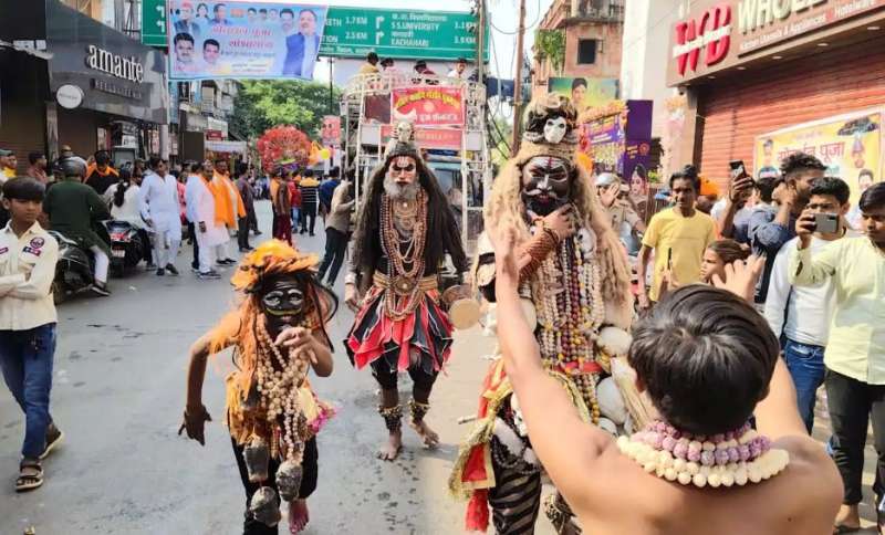 वाराणसी । काशी में यदुवंशी समाज के लोगों ने गोवर्धन पूजा के बाद कृष्ण-बलराम की झांकी सहित शोभा यात्रा निकाली गई। काशी के लक्खा मेला में यात्रा हथुआ मार्केट से शुरू हुई। शोभा यात्रा में चार राज्यों के कलाकार शामिल हुए। यात्रा के दौरान केसरिया साफा बांधे यादव बंधुओं ने परंपरागत मनरी कला (लट्ठबाजी) का प्रदर्शन किया। शोभायात्रा में योगेश्वर श्रीकृष्ण के जीवन लीलाओं से जुड़े हजारों श्रद्धालु शामिल हुए। टोलियों में झारखंड, मध्य प्रदेश, बिहार, प्रतापगढ़, प्रयागराज, वृंदावन के कलाकार पहुंचे हैं। शोभा यात्रा में तरह-तरह की वेशभूषा में लोग दिखे। नरमुंड और भालू के ड्रेस पहनकर लोग यात्रा में शामिल हुए। कृष्ण-राधा बनकर रथ पर कलाकार बैठे दिखे। इस मौके पर महिलाएं एक ही तरह की साड़ी पहनकर नजर आईं।
