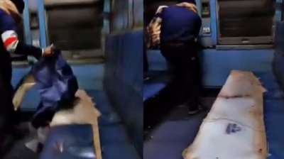 रील के लिए चलती ट्रेन में शख्स ने फाड़ा ट्रेन का सीट कवर