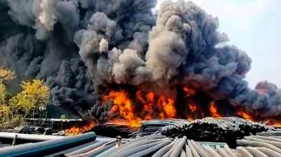 इंदौर: पीथमपुर औद्योगिक क्षेत्र स्थित सिग्नेट पाइप फैक्ट्री में शुक्रवार सुबह भीषण आग लग गई। आग इतनी भयानक है कि इसका धुआं करीब 10 किलोमीटर दूर से साफ दिखाई दे...