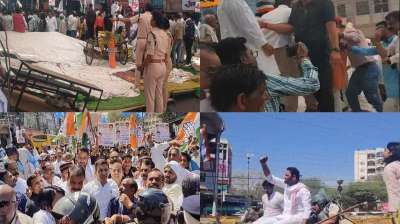 किसानों के मुद्दे पर कांग्रेस का प्रदर्शन, लेकिन मंच नहीं टिका, एक के बाद एक नेता गिरे
