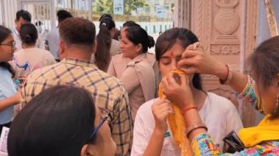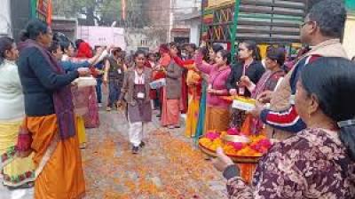 वाराणसी में उत्सवी माहौल, टीका और पुष्पवर्षा से हुआ स्वागत