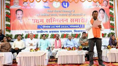जिला पंचायत के प्रथम सम्मिलन में शामिल हुए केन्द्रीय राज्य मंत्री तोखन साहू और उप मुख्यमंत्री अरुण साव